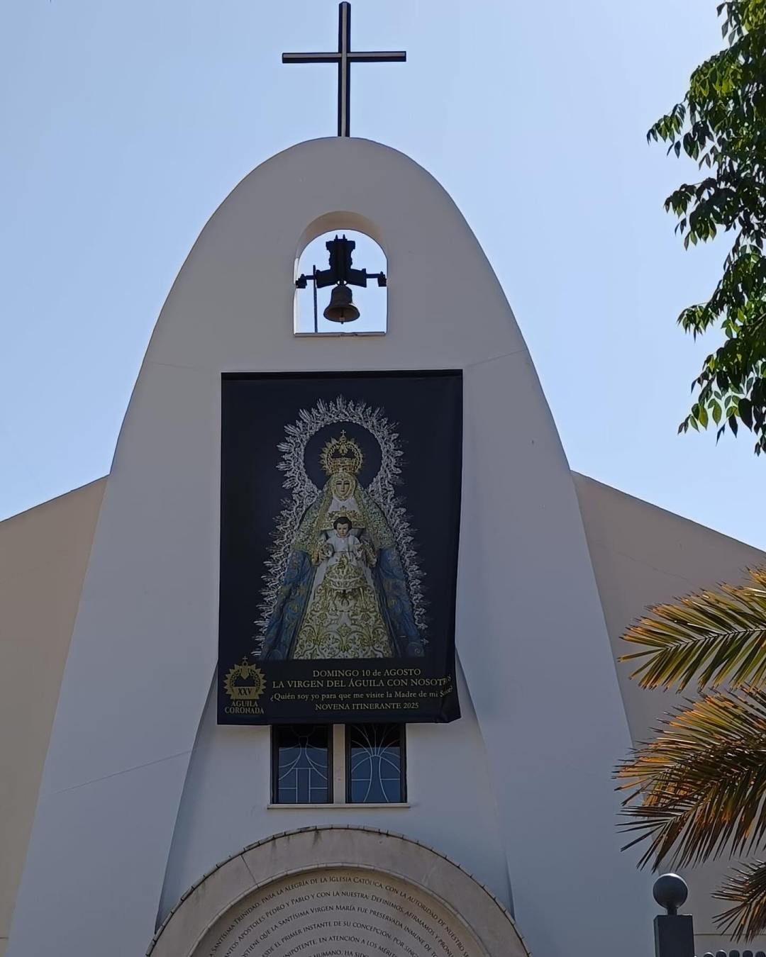 En la noche del 9 de Agosto (D.m) la bendita imagen de Nuestra Señora del Águila coronada llegará a nuestra Parroquia para celebrar su Novena, que con motivo del Vigésimo Quinto Aniversario de su coronación canónica, se llevará a cabo en este año de manera itinerante por todas las parroquias de nuestro pueblo.