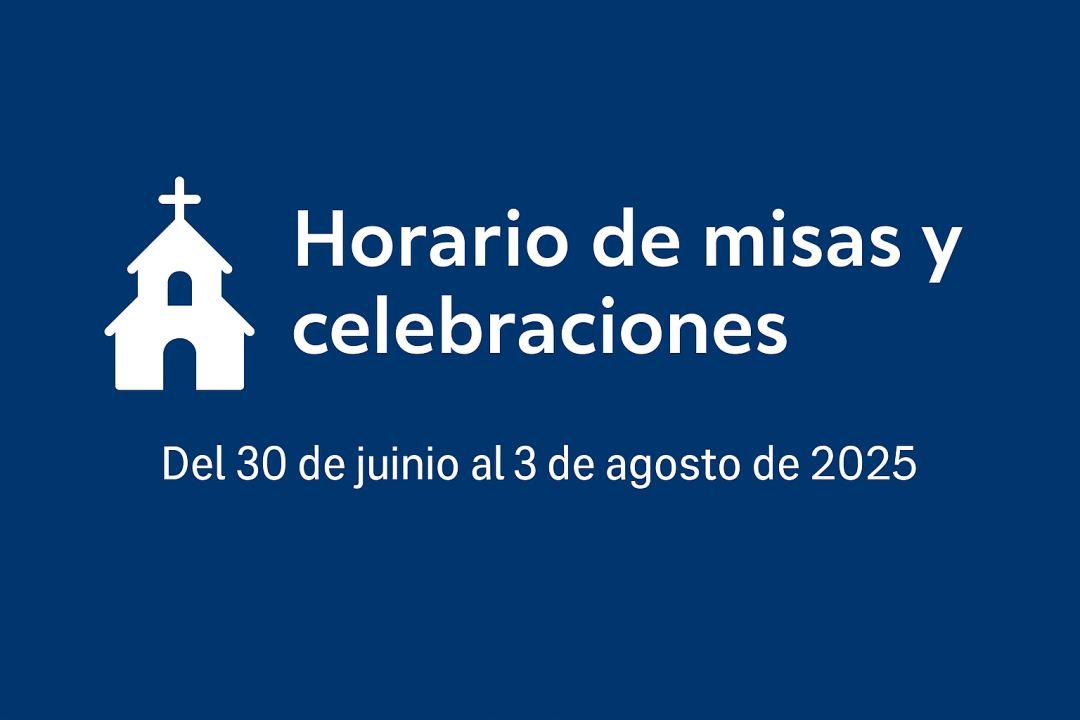 Querida comunidad parroquial: Compartimos el horario de misas y celebraciones durante las próximas semanas de verano para que podamos seguir viviendo nuestra fe y manteniendo nuestra oración comunitaria. 🗓️ Durante la semana: ✅ De lunes a viernes:• Misa a las 8:30 h• Jueves: Adoración al Santísimo a las 9:00 h 🗓️ Fin de semana: ✅ … Sigue leyendo Horario de misas y celebraciones: Del 30 de junio al 3 de agosto de 2025.